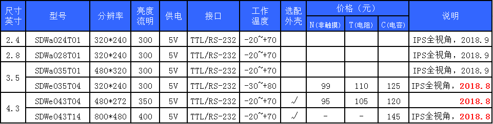 多款小尺寸IPS屏(2.4寸-4.3寸)將陸續(xù)量產