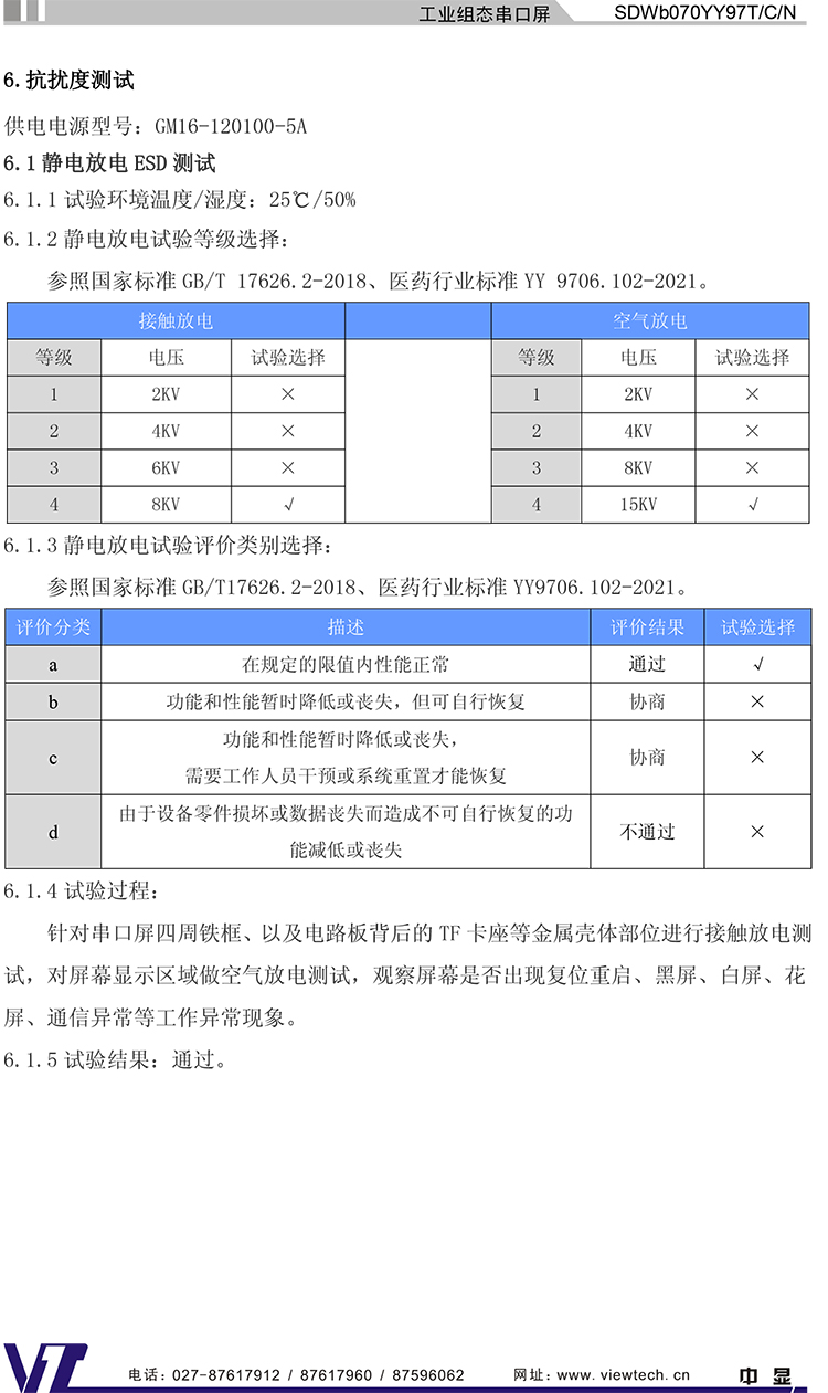 ● 靜電抗擾度行業(yè)領(lǐng)先;接觸放電高達(dá)±8KV、空氣放電±15KV,依據(jù)GB/T 17626.2-2018中的a類評(píng)價(jià)標(biāo)準(zhǔn);